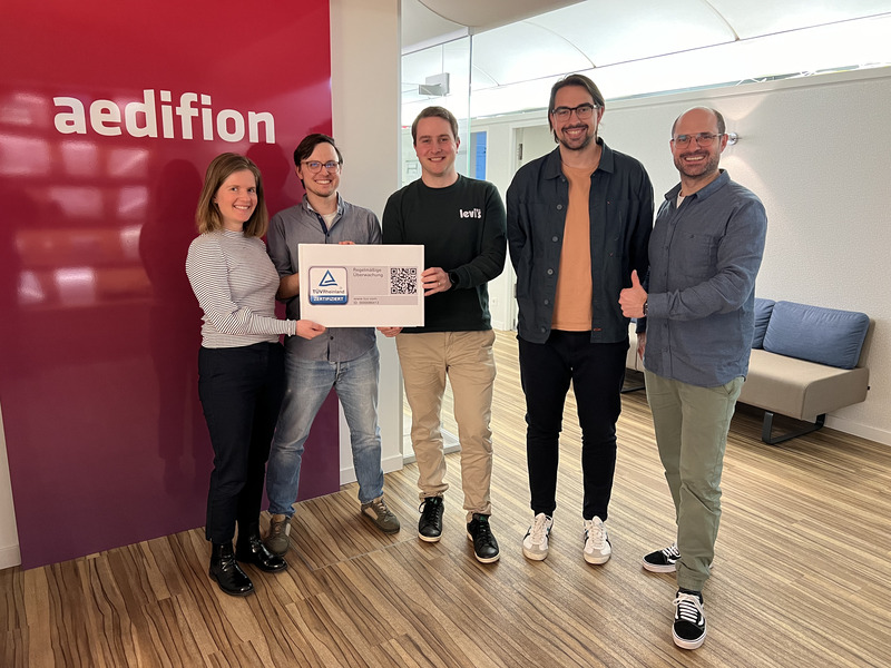 aedifion obtient la certification TÜV pour sa solution conforme à la loi allemande sur l’énergie dans les bâtiments (GEG)