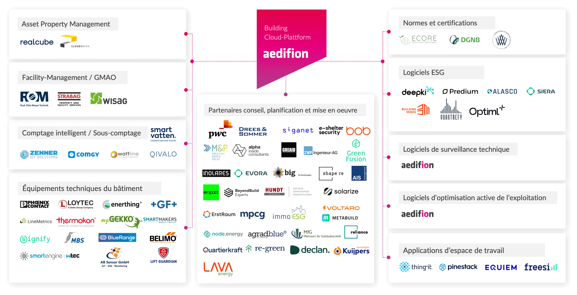Rejoignez-nous et faites partie d’une dynamique collective ambitieuse ! Avec un réseau solide de partenaires, nous avons construit un écosystème performant autour de l’immobilier numérique — un modèle dont chacun tire profit. En tant que plateforme centrale de données, nous garantissons un accès simple et fluide aux données des bâtiments, que nos clients et partenaires peuvent exploiter librement grâce à des interfaces ouvertes et flexibles.