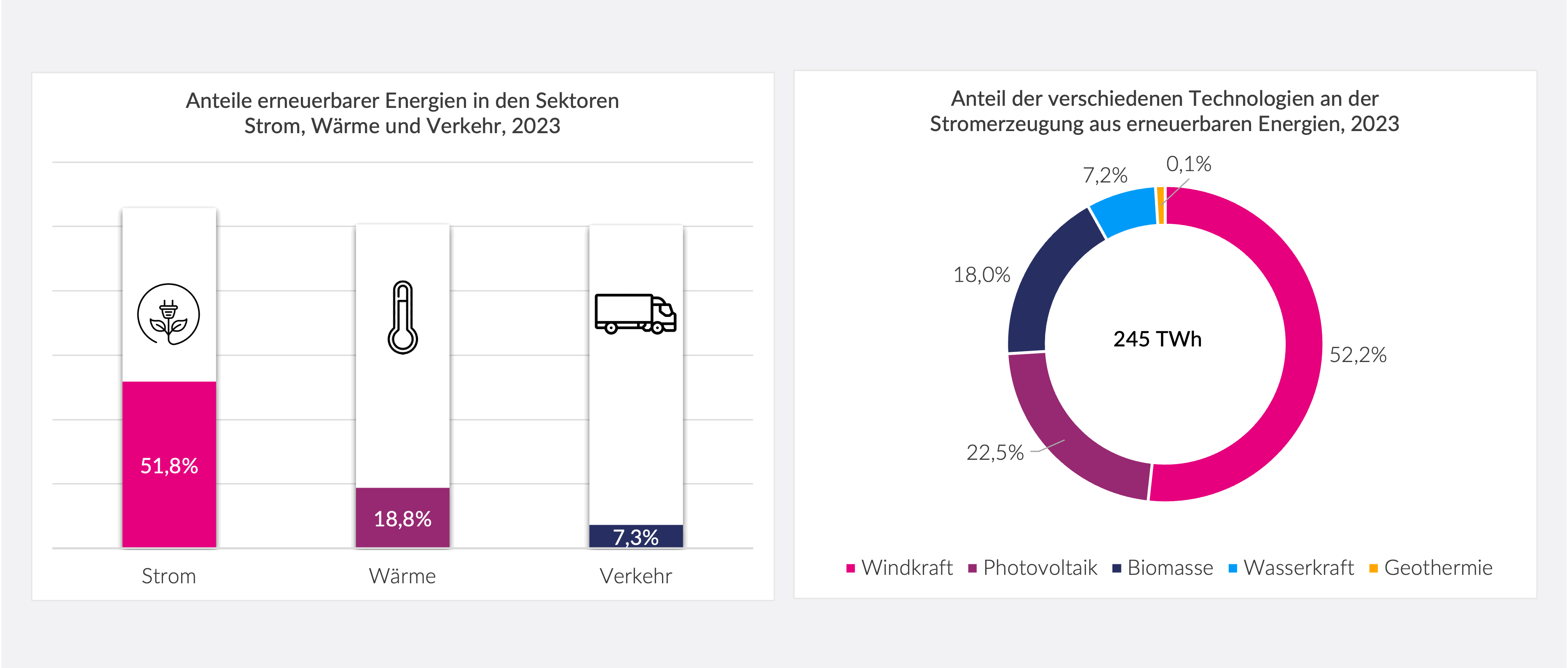 Die Anstrengungen tragen bereits Früchte. So bilanziert die „Arbeitsgruppe Erneuerbare Energien-Statistik“ (AGEE-Stat) des Umweltbundesamtes in ihrem aktuellen Hintergrundpapier, dass im Jahr 2023 mit einem Anteil von 51,8 % erstmals mehr als die Hälfte des gesamten Bruttostromverbrauchs in Deutschland durch erneuerbare Energien gedeckt werden konnte, wobei für 2024 bereits mit einem Anstieg auf rund 54 % gerechnet wird. Im Jahr 2022 lag der Anteil noch bei 46,2 %. Auch der Anteil der Wärme aus erneuerbaren Energien ist laut AGEE-Stat weiter gestiegen. Hervorzuheben sei hier ein deutlicher Anstieg der Wärmenutzung aus elektrisch betriebenen Heizungswärmepumpen.