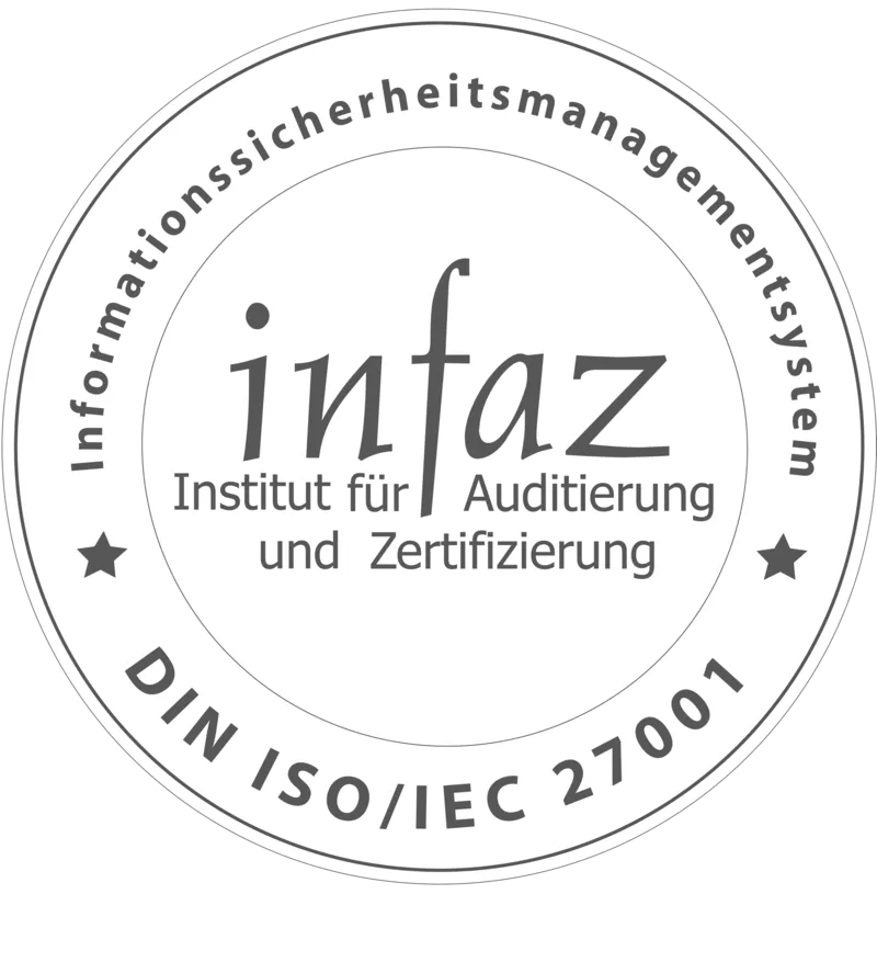 Unser Zertifikat weist den sicheren Umgang mit Daten und Informationen in allen Unternehmensbereichen nach. In einem detaillierten Auditierungsprozess haben unabhängige Prüfer die Wirksamkeit und Sicherheit unseres Informationsmanagements geprüft.